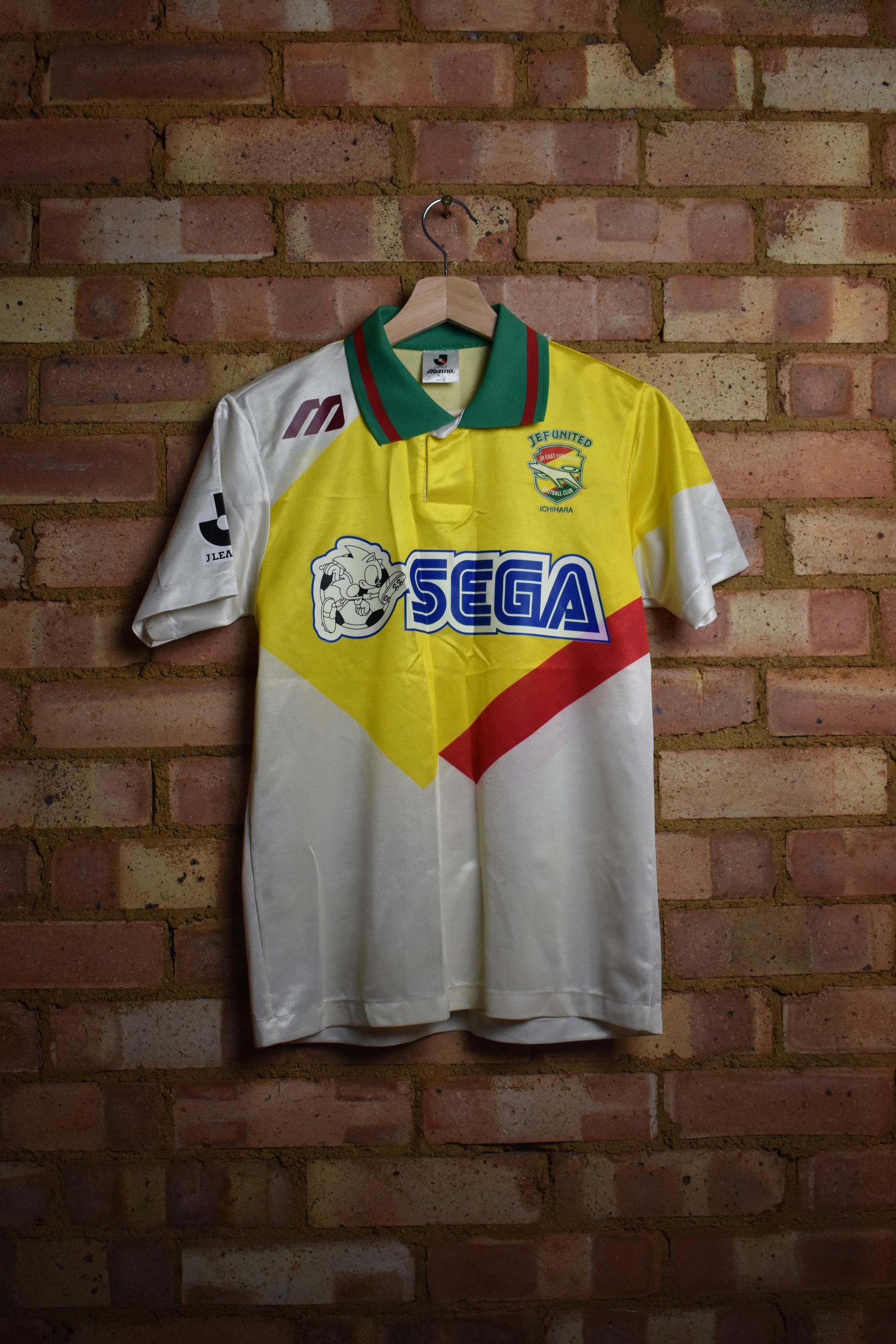 Original authentic 1992 JEF United away shirt manufactured by Mizuno, with iconic SEGA sponsor